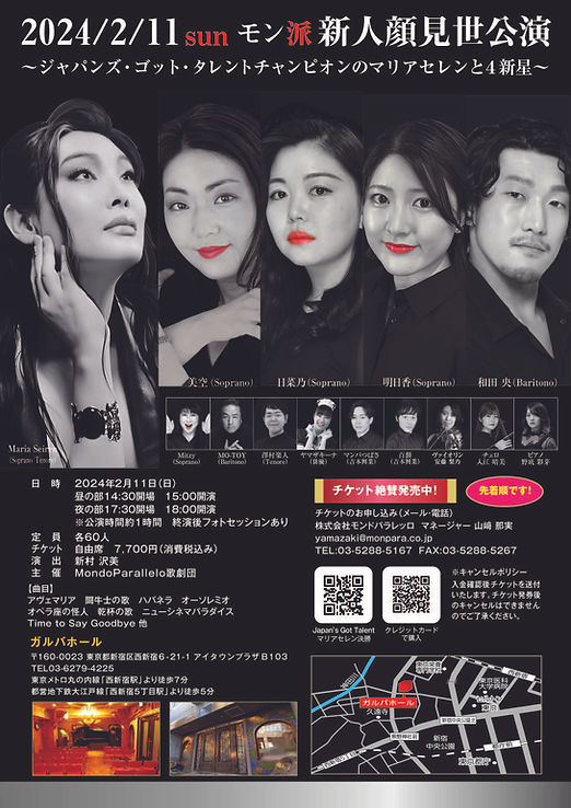 気になる公演に今すぐアクセス!マリアセレンの魅力と能楽師たちと共演するモンドパラレッロ歌劇団のパフォーマンスを自宅でゆっくりご鑑賞ください。